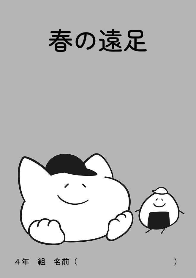 自分のオリジナルキャラクターの猫と、一緒に4年生を担当した先生のキャラクターであるおにぎりのイラスト