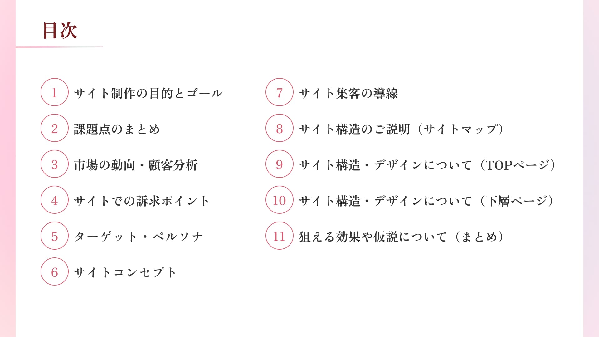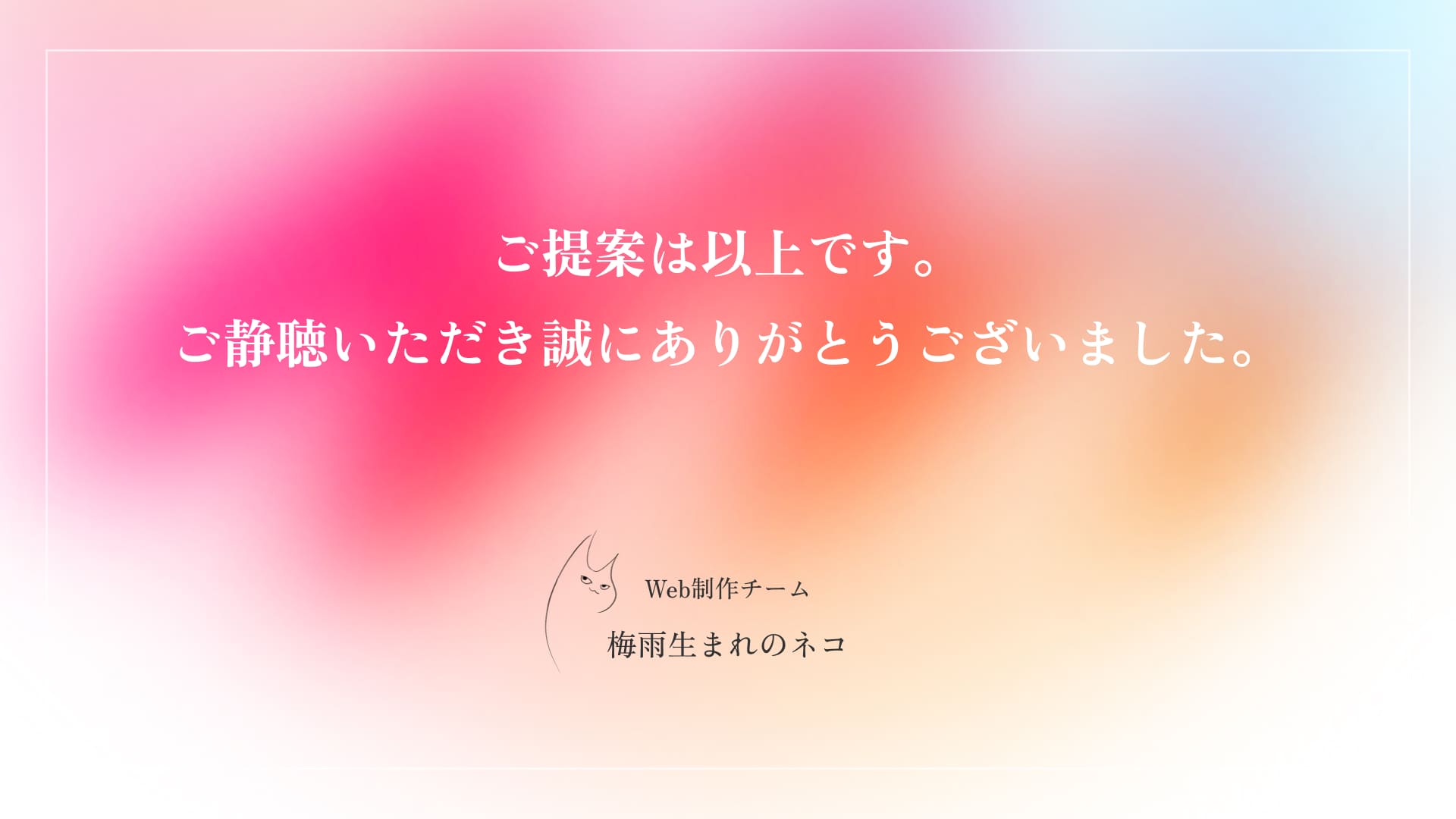 ピンクを基調としたグラデーションを使い、華やかで視線を惹きつけるデザインに仕上げました。グラデーションのパターンはセクションごとに変化をつけており、各コンテンツに視線が導かれるよう設計しています。これにより、ユーザーが各セクションにしっかりと注目しながら閲覧できるようにしました。