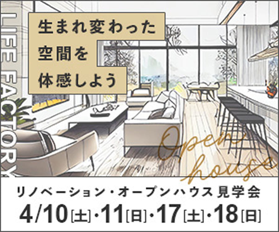 架空のリノベーション・オープンハウス見学会のバナーを制作しました。写真の雰囲気を活かしたデザインと季節感を意識したデザインの2案提案しました。