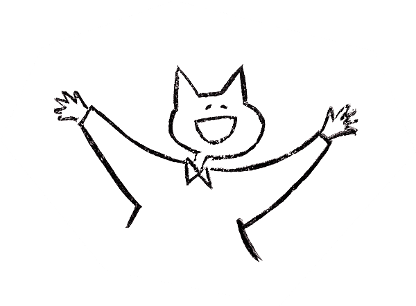 自分のオリジナルキャラクターの猫と、一緒に4年生を担当した先生のキャラクターであるおにぎりのイラスト
