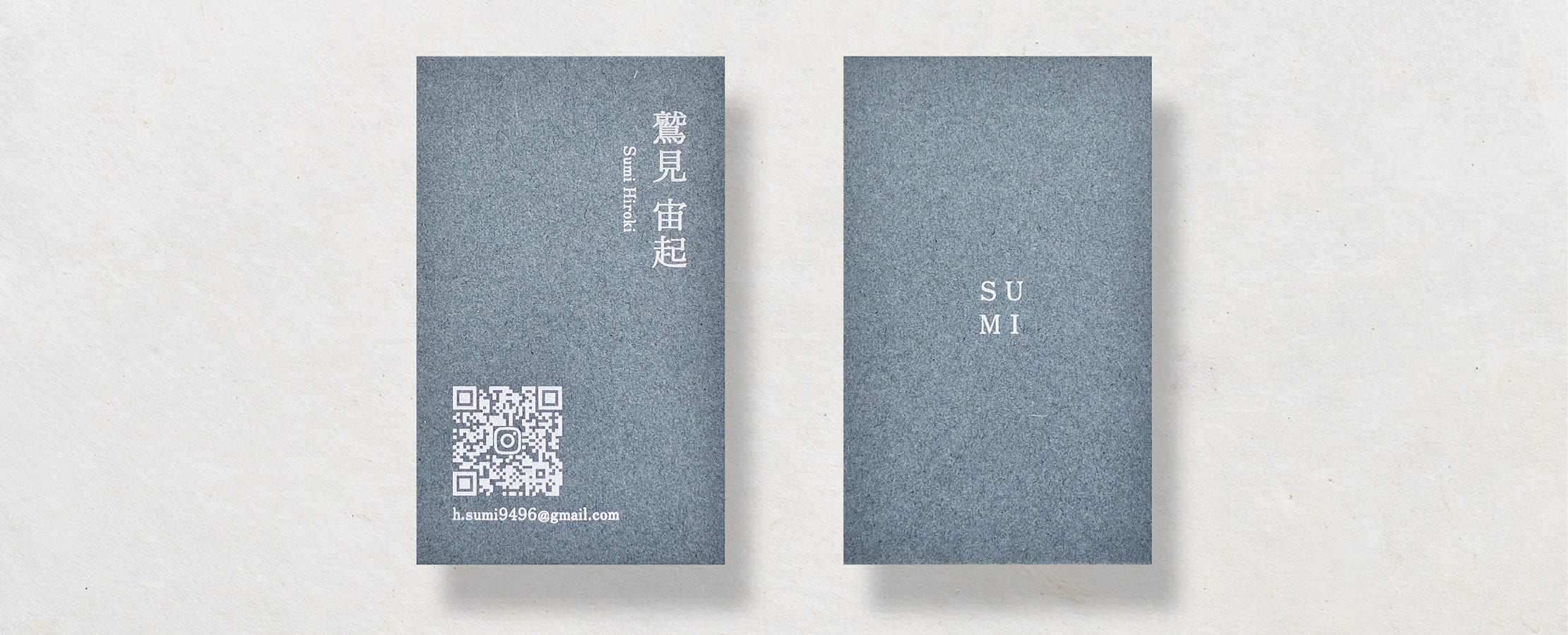 要望の「必要な情報だけをシンプルに見せる」というポイントを大切に、ミニマルで洗練された印象の名刺に仕上げました。表面は情報を厳選して配置することで、余白を活かしたクリアで心地よいレイアウトに。裏面には、名字の「SUMI」を中央に配置し、シンプルさの中にもパーソナルな魅力と印象的なアクセントを加えました。